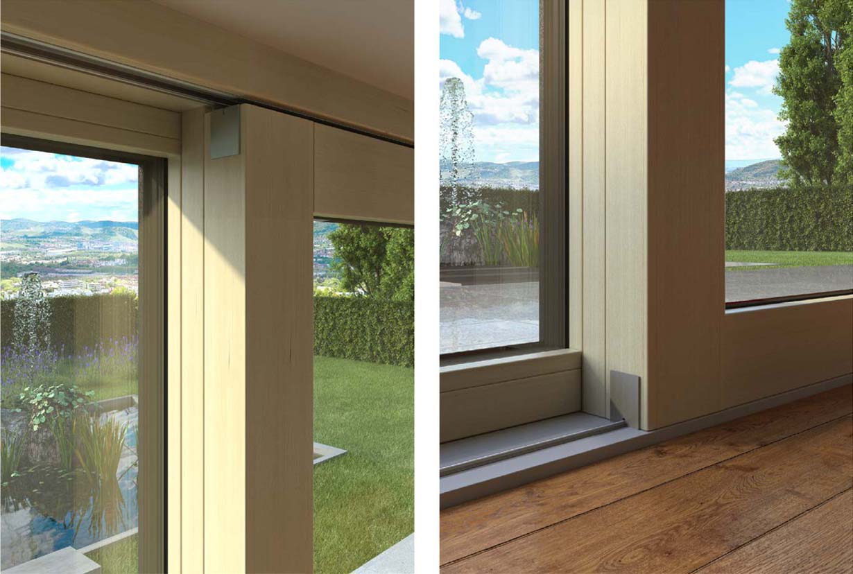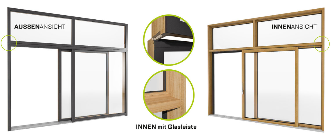 Das System HST 2.0 ist wahlweise auch als reine HOLZ-Konstruktion (ohne äußere Aluminiumschale) verfügbar.