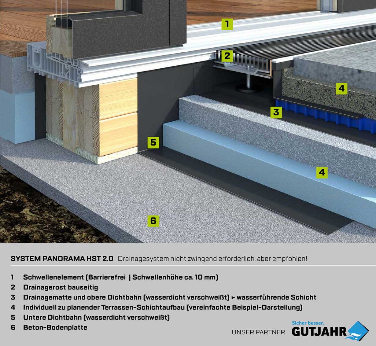 (ca. 10 mm Schwellenhöhe – KEINE Null-Barriere wie bei HST 3.0 und SKYWALL FST 4.0!).